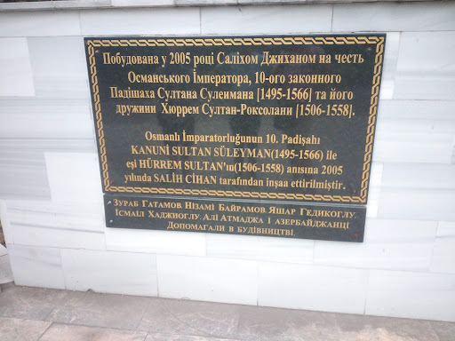 Дуже красива мечеть. Про її існування я дізналася випадково – ніде в путівниках про це не було, на екскурсіях не казали. Просто дивилася карту в телефоні, щоб прокласти шлях до моря, а побачила «Мечеть Сулеймана і Роксолани». Пішла дивитися. Вона дуже вишукана. Була збудована у 2007 році. На територію пускають без проблем, а всередину поки ні, бо йде ремонт. Найменування мечеті було обрано як символічне, об'єднуюче через легендарну слов'янку Роксолану та султана Сулеймана турецький та український народи, наші культури. Прообразом мечеті стала...