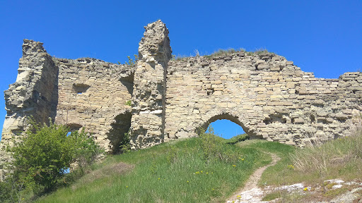 Read moreКудринецький замок — фортифікаційна споруда у селі Кудринці Чортківського району Тернопільської області. Замок побудований з пісковика на початку XVII ст. польськими шляхтичами Гербуртами герба «Павча». Реконструйований в XVIII ст. Розташовувався на плато високої крутої гори, яку називають «Стрілкою», над р. Збруч. До нашого часу збереглися: південна, західна і північна стіни; частина об'єму південної п'ятигранної башти на висоту трьох ярусів; північно-західна шестигранна в плані триярусна башта; частина надбрамної башти. Всі башти мають прямокутні бійниці і кубла від балок між'ярусних перекриттів в кладці стін. Підземний хід, що починався у п‘ятигранній південній башті, зараз засипаний камінням і землею. Біля південної стіни простежується аркоподібний проріз. Це — невелика хвіртка, яку використовували для несподіваних нападів на ворога. Неглибока западина біля шестигранної вежі вказує на місце, де колись була криниця. Найбільша довжина замку всередині — 70 м, а ширина — 25 м. Стіни...