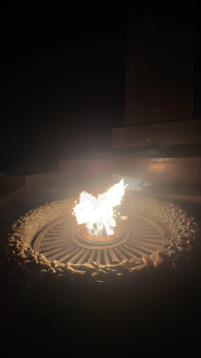 В бронзовам венке (дубовые листья) горит Вечный огонь.