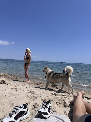 Как для Харковчан, где нет подобных пляжей и собак совершенно не рады видеть на пляжах, в Одессе все совершенно по-другому. Пляж не оборудован и также он не Дикий, как писали в интернете. Специальных мест для собак : так таковых нет. Просто песок и все. Если собачка сходит в туалет, то если хозяева хорошие, то уберут конечно. Но а так, запах есть конечно ... выбирайте место с умом. Есть кабинка для душа! Но с ней тоже, нужно быть осторожнее, ибо есть артефакты так таковые, что ходят и в наглую заглядывают в кабинку... я до сих пор в шоке. Деревья тоже есть, но они не на самом пляже а находятся на складе перед обрывом. Вода. Вода хорошая, но с другой стороны, очень много водорослей. Откуда они? И также не ясно какое же там дно: где-то проваливаешься в глубину, а где -то нет, также там есть волнорезка. Посреди моря. Страшнооо На нем среднее количество людей на его кубатуру и растяжимость пляжа, но все же много. Даже под вечер, люди...