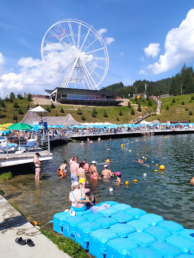 Read moreПриїхали сюди з Яремче щоб поплавати в озері. Озеро саме велике,але територія,яка відведена для плавання така мала - метрів 5 в ширину і то частина під плитами. Озеро саме велике і широке але основна його частина відведена для плавання катамаранів,а для плавання людей невеличкий кусочок біля берегу. Тому більше сюди не будемо їхати. Лежаки і шезлонги треба ходити й шукати по всьому пляжу самостійно а потім ще й слідкувати за ними,щоб хтось інший хто щойно прийшов і шукає собі парасольку не забрав вашу. Для тих хто плавати не вміє або не дуже вміє,то підійде тому що рятувальні жилети безкоштовні,рятувальники і медпункт є. Також є безкоштовні туалети й роздягальні. В цьому плані все добре Але для тих хто плавати любить це не...