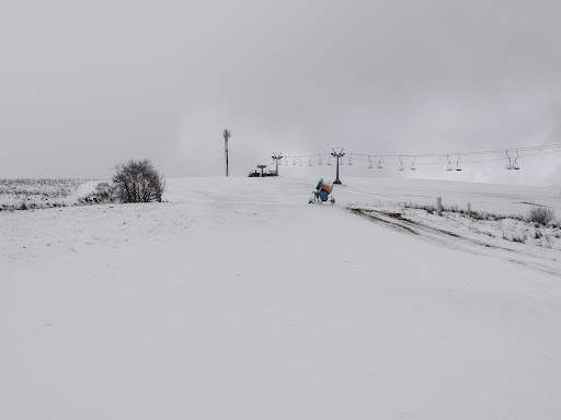 Кресельный подьемник работает, едет довольно медленно и плавно. Лыжи на коленях, наверное когда снега больше то на ногах. Помогают сесть и сойти, но при недостаточной расторопности могут быть спецэффекты. Цена за разовый подем 200грн. Склон на 80% снег с коркой льда, кант не врезается, мелкие растения ещё торчат из-под 5см слоя снега. Надо ждать снега...
