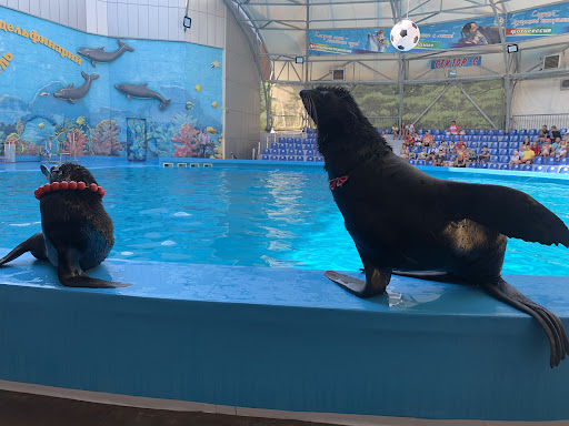 Read moreДаже в разгар курортного сезона дельфинарий заполнен на 1/4 максимум. В представлении участвуют 2 дельфина и 2 морских котика. Все трюки выполняет только один дельфин. Из необычного, дельфин катает морского котика. Билеты дорогие для такого шоу. Персонал спекулирует масками, пускают только в них (потом все снимают), а в вестибюле их продают по 35 рублей (без чека). После представления фотографирование и плавание с дельфинами. Персонал организовывает какие-то очереди и путает людей не в состоянии провести все по порядку. Дрессировщики во время процедуры откровенно скучают и сидят в телефонах. 5 минут на плавание достаточно, не за чем переплачивать за 10 минут, ничего нового не будет. Не рекомендую...