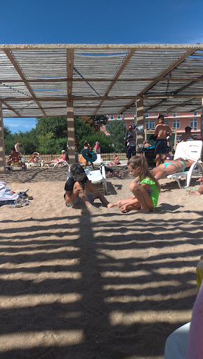 Read moreПляж небольшой, есть детская площадка, навесы, шезлонги, киоски с вкусняшками и пляжными принадлежностями. Песок и мелкий, мелкий ракушечник. Сам пляж чистый. Из минусов. Опять же пляж не большой и в часы пик, все лежат и купаются практически друг на друге. Вода вроде чистая, даже рыбок видно, но мусора тоже хватает . Какая то железная труба из воды торчит, сверху забита камнями и мальчишки с нее ныряют. Почему то платно помыть ноги после пляжа ( на других бесплатно).