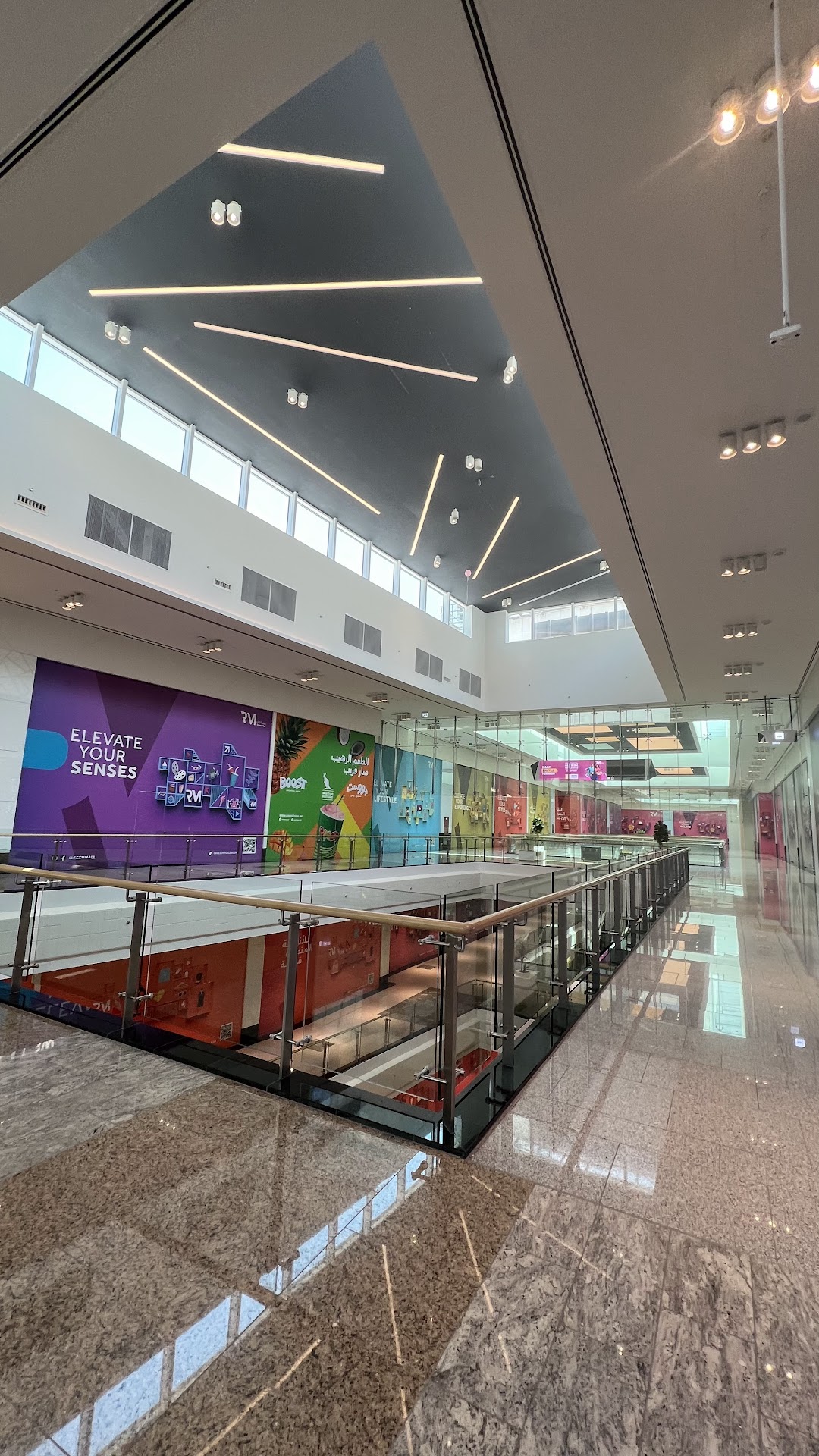 The mall's architecture and interior design are inspired by the natural beauty of the Arabian Gulf, with a stunning central atrium that brings in natural light and offers breathtaking views. The interior theme, "The Pearl", reflects the region's rich cultural heritage and the mall's connection to the sea. The design elements feature undulating wave patterns, shimmering mother-of-pearl accents, and soothing ocean-inspired colors, creating a unique and captivating atmosphere.