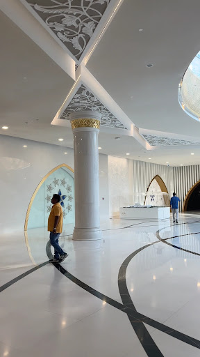 Культовое место, действительно великолепный шедевр зодчества. Среди всевозможных must-see в Эмиратах мечеть эту часто ставят на второе место после рукотворных островов в Дубае. Но такой подход кажется весьма странным. Эти две достопримечательности несравнимы. Островами лучше любоваться с воздуха, когда не находишься непосредственно на них. А мечеть можно разглядывать снаружи, издалека и вблизи, и изнутри. И даже потрогать вполне осязаемые узоры, украшающие её. И по назначению, по статусу объекты различны. Ощущения у каждого посетителя, естественно, индивидуальны. И своё самое яркое впечатление приведу в завершении этого короткого обзора. Сейчас же просто укажу некоторые основные и, возможно, полезные для многих сведения о самой мечети и её посещении, которые актуальны в марте 2024 года. Про историю постройки, особенности архитектуры и прочее - всё это вы точно можете найти довольно легко в сети. И почти единодушно все авторы относят это сооружение к шедеврам архитектуры. Вот и у меня не поднялась рука поставить меньше 5*. К этому прибавилось ещё и собственное неповторимое ощущение - о нём расскажу ниже. Что же касается самой процедуры визита в мечеть, то на данный момент необходимо предварительно забронировать посещение на официальном сайте. Вход осуществляется через подземные переходы, спуски в которые обозначены двумя прозрачными полусферами недалеко от мечети. Выход, сразу скажу, осуществляется в обратном же порядке, по этим же переходам. В самой мечети и переходах есть электромобильчики, и водители могут совершенно безвозмездно вас подвезти. Посещение мечети бесплатно, но до прохождения стандартного досмотра в целях безопасности, вас попросят просканировать полученный при регистрации qr-код. Без него не пустят. Если что, его можно сгенерировать на месте - на том же официальном сайте. Далее этот код будет сканироваться на контрольных точках прохождения экскурсионного маршрута представителями службы безопасности. Если вы обычный посетитель, в молельные залы вас не пустят, но дадут увидеть их со стороны, от входа в них, где вы будете находиться на помостках. Часто не пускают прогуляться и по шикарному внутреннему двору мечети. Это, кстати, не зависит от одежды-обуви: всё определяется регламентом посещения в данный конкретный момент. Дресс-код довольно строг, но обычных туристов обувь нигде снимать не заставляют, а купить необходимую (особенно для женщин) одежду для посещения мечети можно в магазинчиках в подземных переходах или на входе в них. График посещения мечети надо каждый раз уточнять на сайте. Мне повезло быть одним из самых запоздалых посетителей (говорят, мечеть лучше осматривать в тёмное время суток - подсветка подчёркивает её великолепие), и служба безопасности разрешила пересечь внутренний двор мечети, чтобы пройти к могиле шейха - того самого, именем которого она названа. Ребята вежливые, внимательные, обходительные - некоторые из них выступили в качестве экскурсоводов. Спасибо им огромное ещё и за то, что обеспечили мне комфортный обратный путь на двух электромобилях (с пересадкой)! В итоге в лунном свете передо мной предстала очень скромная могила основателя ОАЭ, главы богатейшего на планете семейства, многие сокровища которого мне удалось увидеть в различных хранилищах и дворцах до этого. И весь блеск и роск
