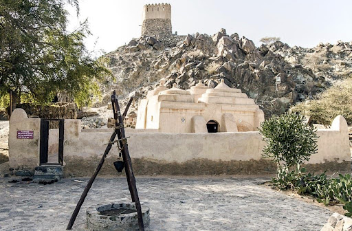 Al-Bidya Mosque (Arabic: ู ูุณูุฌูุฏ ูฑููุจูุฏูููุฉโ, Masjid Al-Bidyah, sometimes transliterated as Al-Bidiyah (ูฑููุจูุฏูููุฉ) or Al-Badiyah (ูฑููุจูุฏูููุฉ)) is a historical mosque in the Emirate of Fujairah, the United Arab Emirates. It was the oldest known mosque in the UAE. The small, square structure has an area of 53 square metres (570 sq ft) and was built from materials available in the area, primarily stones of various sizes and mud bricks coated in many layers of whitewashed plaster. The roof has four squats, helical domes that are supported by only one centrally placed pillar that also forms the ceiling. Entrance to the mosque is through double-winged wooden doors. Inside the prayer hall, a number of small decorative windows allow light and air to enter the mosque. There are also cube-shaped spaces carved into the thick walls where copies of the Quran and other books are stored. The mosque continues to host daily prayers, and is a tourist attraction. This is the oldest mosque in UAE and No one can be sure to this day who built the mosque. The Al Bidya Mosque is considered a landmark with unique archaeological importance, as it gives us a glimpse into the lives of people living on this land over 500 to 600 years ago. While visiting Al Badiyah Mosque, leave some time for a quick trip up to the Al Bithnah Fort, notable for its beautiful vistas over the surrounding scenery.