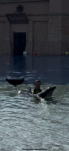 However, the dolphin encounter itself has significantly declined in quality. About ten years ago, the groups were smaller, and the interaction with the dolphin was much more personal—you could play with the dolphin, receive a kiss, and have a truly engaging experience. Today, the experience has been reduced to standing next to the dolphin as a group, holding it briefly, and then taking turns posing for a photo. This is far from what you would expect for such a high price.