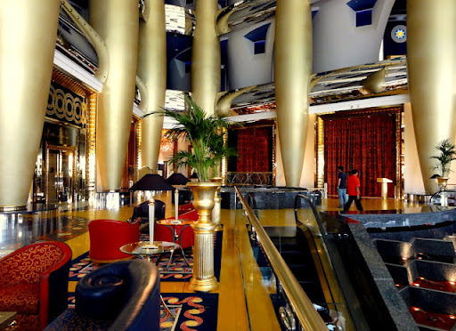 Every inch of the interior is meticulously designed to evoke a sense of grandeur and sophistication. The architectural marvel of the atrium, with its towering golden columns and cascading fountains, sets the stage for the lavishness that awaits within. The attention to detail is impeccable, from the intricate mosaics adorning the floors to the ornate furnishings that exude elegance at every turn.