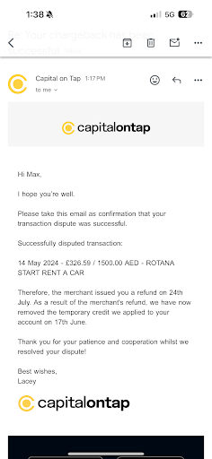 My husband booked a blue corvette stingray through this company, after being let down by another company a few days prior. We had spoken to Ashlem on the day who was lovely, and ensured us we would get a blue automatic roof corvette stingray for Saturday 28th September. She stated that they had 4 available and it would not be an issue at all. She had sent me a message confirming the booking drop off time at our hotel for 10am. I had also received a message from the company from another mobile number confirming the same. Ashlem charged us 1400 aed with no deposit, however I have since looked at the website, and they only charge 1199 aed for the same car, so appears Iâve been scammed out of 200aed.