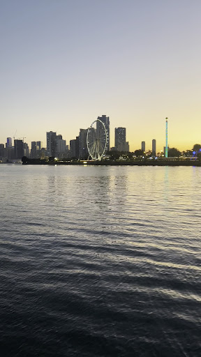 View & Atmosphere As the sun dipped below the horizon, the city lights began to twinkle, casting a golden glow over Sharjah’s skyline. The view from the top was stunning—panoramic sights of Khalid Lagoon, Al Noor Island, and the Corniche made the ride feel magical. The gentle breeze and soft lighting added to the charm.