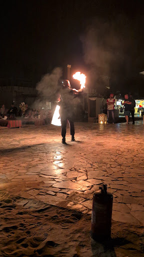 The evening entertainment bonanza starts just after sunset and goes on for over an hour. A well laid out buffet is served as you enjoy the performances on stage while munching on the delicious barbecue buffet dinner on offer. Adding to the atmosphere of the night was the talented belly dancer who was dancing to the upbeat rhythms of Arabic music. As I sat there on an oversized pillow, puffing on my apple-flavoured shisha and watching the seductive moves of the belly dancer, I couldnāt help feeling like Lawrence of Arabia!