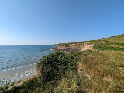 Great little beach, dogs are allowed, even a nice little trail through the trees for the dog if it's too hot, parking can be difficult, it's by the cable hut, on the side of the road,but not that many cars/vans can fit,but it's free. On 27 July 1866 Abermawr became the eastern terminal of the Transatlantic telegraph cable when Brunel completed an ambitious scheme to lay a telegraph cable under the Atlantic Ocean. The cable was laid by Brunel's steam ship Great Eastern between Trinity Bay in Newfoundland and Valentia Island in Ireland. It then crossed Ireland via a landline before going under the Irish Sea at Wexford to re-emerge at Abermawr. Telegraph operators who were stationed in a corrugated iron hut would retransmit messages to London via the SWR and GWR telegraph wires, enabling the first ever telegraph communications between Britain and North America. A second cable was laid in 1880, this time however to Blackwater. Abermawr telegraph relay station continued in operation until 1922/3, when cables were damaged by a storm and Abermawr was abandoned. The hut still stands today and is in use as a...