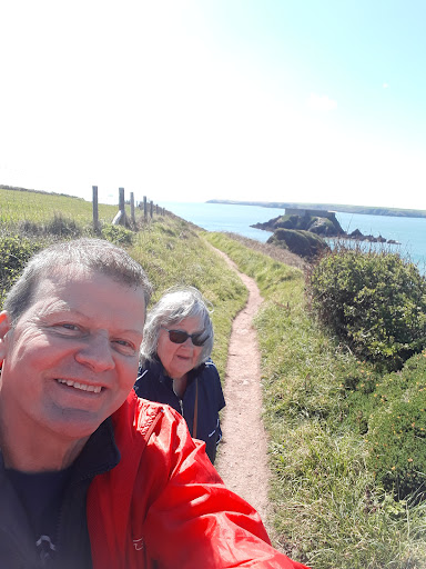 Read moreThe bay is stunning and most of the time is not particularly busy..however the car park is quite large and free and the walks around the coastal.pstg spectacular..there is a brilliant geocache router round here too if you are so inclined. The beach is big and spacious and the sea fabulous for splashing about canoeing or just having fun..it is a sandy beach too. It's quite windy most of the time but is a fantastically relaxing place to be..there are campsites nearby too and this is the go to beach for them. There is a cafe and toilets by the beach too. Other end of the village is a wharf with bigger boats..other side of the headland is the ferry channel to Milford haven and Pembroke dock ferry port and you can watch the big ships come...