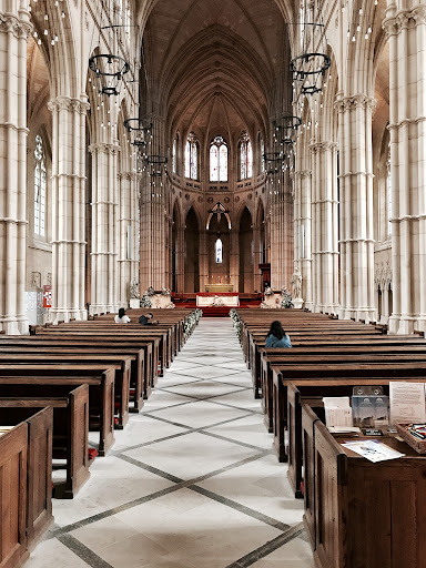 Read moreNot as old as you might think, and if you looked closely at the exterior there is a combination of the unfinished (lots of places for statues are empty, and there are many of them) and falling to pieces (many of the gargoyles are missing their spouts, some are gone altogether, and detail on some of the statues has been worn away). Inside you notice how sparse the decoration is; a few plaques and memorials on otherwise blank walls with what looks like a more recent crucifixion frieze embedded in the stonework, and that there is much less stained glasswork than you might expect (of course, this would be expected to be added to through collections and donations from the filled pews - hence the number of organ recitals and other such events these days). The grey metal spire(?) seems out of place with the stained, almost...
