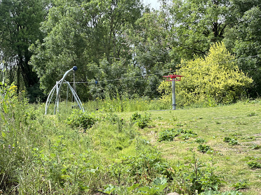 Very limited parking. Recently updated park. While some of it is nice (like a zip wire), a lot seems really pointless and a bit of a waste of money. Why they removed the big slide that went down the hill, I don't know as that was the key feature. There are some nice open green spaces and various footpath roots to walk. A little over grown at times, but currently a lot of loose earth from the playground works. Unfortunately rubbish everywhere on June 26th. Not sure why, odd that there was so much in bags and not just overflowing bin....