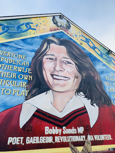 Read moreThere is so much Hope, in the people whose faith was so tested by the violence, "the troubles" of the late sixties, seventies and eighties. Falls road, The Bobby Sands mural (and other images)of the martyrs of a terrible and unjust time, are a prayerful reminder, not just for Catholics, but for all of Belfast and the North to work for a continuous Peace and Justice. These murals, these Walls are an honoring shout out for peace on this busy street, and this Shrine, these Walls, ever a reminder to diligently continue efforts and hard work for peaceful resolutions to resolve differences...the price we pay, the harm and death our children and theirs, and of our own souls is too high. Peace...