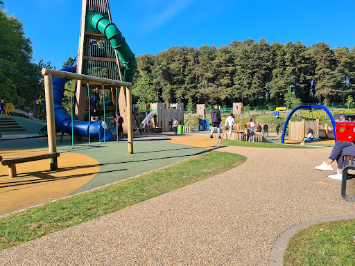 Excellent park. Lots to do for children up to about 11/12 years old. It's my 9 and 6 year old favourite park. It's very open, so easy to see nearly all of park staying one place. Lots of bench seating around the edges (maybe 16+ of these). Toilets are available in the park. There's an excellent Coffee Dock serving hot drinks, crisps, traybakes, chocolate bars, cold drinks and ice lollies/tubs of ice cream. Picnic tables at coffee area. Many extra picnic tables and benches can be found just outside the park.