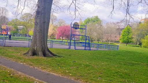 There is activity ground for basketball or 5 aside football, as well as an area for cricket nets practice. There are a fair few activities for younger kids with swings, slides and climbing frames.
