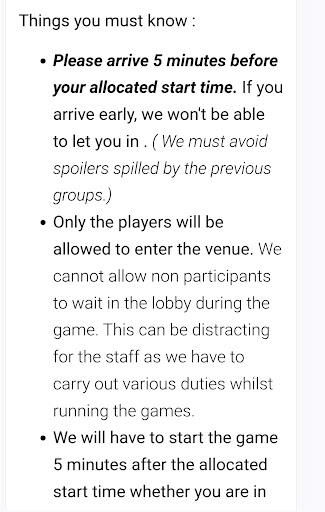 My fiancé and I went for my birthday on Friday evening and it was absolutely incredible - we had the best time. We did Shelter-Z. The theming is first class and the clues really well thought out - you can tell they have spent a lot of money and put a lot of thought into everything. We paid extra for the actor to scare us and that made it more fun too. Mya was lovely - really passionate and helpful and delivered timely clues. Only thing I could fault, is I have multiple eye disabilities and the room is obviously low light. I kept my phone with me and had to use the flashlight on it for a lot of the game so I could see what I was doing. She reminded me over the speakers that phones are prohibited, I think this is just because if you're using it to cheat then it spoils the fun. I said it's because I've got bad eyes and am struggling to see and she said no worries and told me where not to aim my light so as not to spoil anything which was helpful. I didn't make the booking so I don't know if they ask during the process whether you need any reasonable adjustments. If they don't then I think it would be helpful for them to do so. Once we had solved a certain number of clues and made it into the second part of the room a torch became available, but I could have done with it the whole time. I'll either take my own torch next time or ask them when I get there if they can give me a torch from the beginning. They have some info on their website a about some disabilities (such as claustrophobia), but I don't recall seeing anything about those with impaired vision. Overall we had the best time and it was really worth the money. The room was a bit hard for us though 😅 perhaps we should have started with something easier. Anyway, we still had so much fun and would definitely go again. Mya...