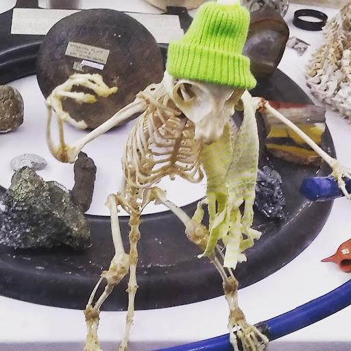 They had two large dinosaur bone models and several skulls. As well as a wall of rocks and a good display on precious gemstones.