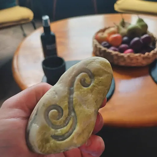 The treatment is very personal, too. The beginning involves selecting some runic carved stones. These tactlie pebbles are threaded with fossilised seaweed and have silvery symbols carved into them. They tumble out of The Highlands knotwrap cloth, and you find yourself drawn to the ones that speak to you.