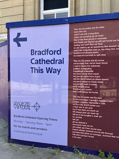Read moreA beautiful cathedral! I approached via some very impressive sweeping stone steps/staircase and was immediately impressed by the shape and size of the Cathedral. I was warmly greeted as I entered the Cathedral and had a really interesting chat with the guide. The stained glass windows, many by William Morris are a joy to behold and the ceiling is equally impressive. It was very touching to see the plaque referencing the Bradford City Football Ground fire. There is a small shop and toilet facilities. Well worth a visit to o this...