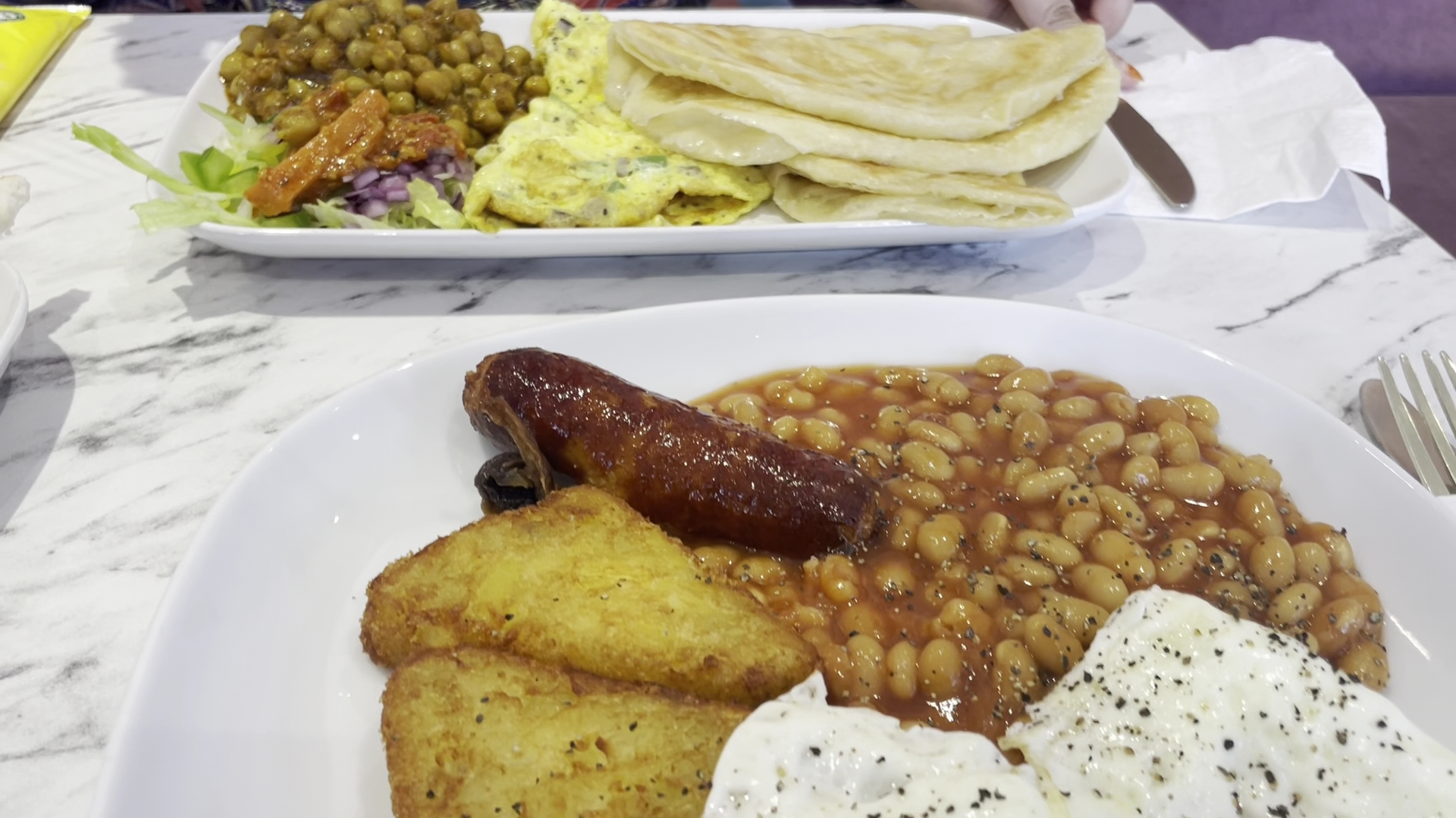 Tasty Fantastic deal on breakfast between 10am to 12pm. Mix match is allowed two for £10. Well pleased with value, happy with food quality and calm and relaxing atmosphere. Lots of parking, very clean area inside the cafe and outside surrounding centre, very clean presentable washroom area too. Many other shops are here but today I'm reviewing the cafe. We been coming here since February 2025 we travel from southwest of England to Bradford to buy Asian clothes and jewellery. We make Bradford plaza our service stop area to freshen up have breakfast after driving 4hrs to get here then carry on with our day...