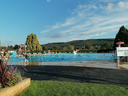 A huge, unheated outdoor pool which is an unusual shape and still has its traditional fountain. The pool is situated in a large park with lots of (paid) car parking. I booked in advance via their website. At £11.95 per session it was quite expensive for an hour's swim, but the session was for the whole of the afternoon, so I fully appreciate the charges. It was a hot day, and the pool was full (which was being carefully monitored by the security staff on the door). Thankfully, those who had booked in advance could avoid the queue. Fairly limited number of changing cubicles, showers, and only 2 toilets in the ladies changing rooms. Lockers available at £1 refundable. Thankfully there is a small section of the pool (between the shallower/fountain/slide end and the deep/diving end) which was laned off for the handful of people who wanted to swim! The lifeguards did a good job of keeping the kids/dive bombers/inflatable doughnuts out of the lane and I had a relatively relaxing swim 🏊♀️🙏 The area which is laned for swimming is too deep to stand in, and the water temp (handily displayed on the changing building) was 21.4° in the middle of a heatwave. Very refreshing. Well done to all the staff who seemed to be taking the chaos of a capacity pool in...