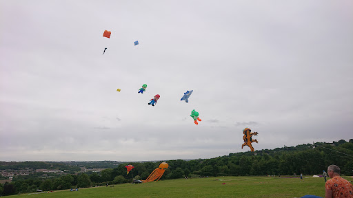 Management of the park (Council parks and recreation in partnership with Friends of Northcliffe)increasingly emphasizes wildlife to create meadows, habitat piles and expand the woods, leave more dead wood for the wildlife but manage paths & amenity too. Benches are dotted around throughout, memorial benches too - notably for local nursery school teacher Tony Woods. Tennis courts have recently been renewed, and volunteer run activities have steadily stepped up, multiple sports activities and teams use the park, but there was historical underinvestment in the park. In a way that's good because apart from the state of the changing rooms, and staring at the golf course's bridge it feels very natural & unspoilt. Formal & informal arts, sports & community events happen regularly, for example recently there was a popular kite display run by friends of Northcliffe & Northern Kite Association (or something like that) recently (props to Lydia), there was an orienteering event on the same day; the Rae gala day is coming up (named for Sir Norman Rae who donated the park, bit sycophantic taking vintage too far if you ask me but the day is not about that really - a small but good, busy traditional gala/fete including ferret racing, & mini train rides & cups of tea on a good day, kids & community organizations performing too. Stalls. Probably a raffle & tombola somewhere). There was some hanging artwork made at a solstice event. A few of us create ephemeral works of art with natural materials now & then. Kids build dens (caution/care required; sometimes unsound branches are placed up high, or too much disturbance is caused to the woods but I'm not against kids playing & sometimes join in: the dead wood in dens is also likely to grow jelly ear fungus for foragers).