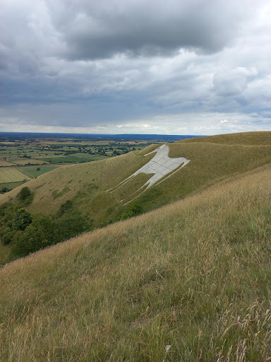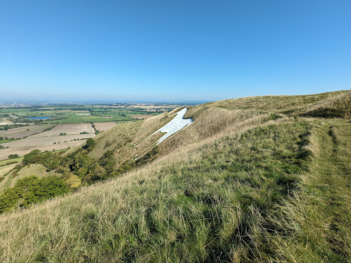 Great place for walking dogs around the beacon and grassy areas behind the car park and also across the road a short walk to view and walk right up to the now painted (since 1950s) concrete white horse on the hill. There is a lot of history and unknowns about the site, worth reading about. Do beware the obvious steep drops if your dog likes to pull as notices say they are to be on lead in the fenced and gated area. There are great ridges and dips to get different views and where I understand the historic fort battlements used to be. Superb long views on a clear day, across to the East, North and West as you walk around the top ridges on the all weather paths. Very windy, of course, so great for flying kites, short-wing paragliding and...