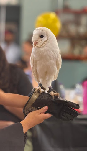 In just 45 minutes, they managed to teach a group of around 40 children all about owls in a fun, engaging, and truly memorable way. The highlight was their beautiful white barn owl, which they let fly in front of the children – and each child had the amazing opportunity to hold the owl and have their photo taken with it. It was genuinely special.