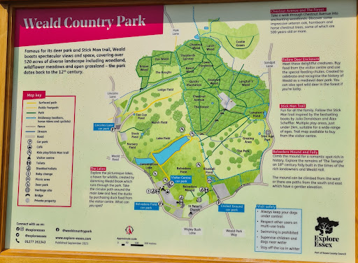 Read moreWeald Country Park is a lovely spot for a family day out, but it falls just short of its potential. The park is expansive, with beautiful woodlands, lakes, and open spaces, making it ideal for a stroll or a picnic. However, the Stick Man trail, which we were particularly excited about, was a bit of a letdown. The walk felt underwhelming, with many of the displays looking worn and in need of some attention. It didn’t quite live up to the magic we were hoping for, especially considering how much our children love the Stick Man story.