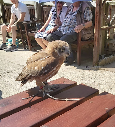Read moreWe had a family/small group bird handling experience,two boys one 16 other 13, myself and husband, it was a really hot day and I was a bit concerned it might have got cancelled, as obviously did want the birds or ourselves getting too hot.... No need to worry, as birds were only flown for a few times while we held out our arms...think we were more frazzled than them....our guide,who's name I forgot ....sorry!!....was excellent, took us through each step, in fact one of our boys was really nervous and decided to step out of the ring...she tried to coax him back but to no avail...she was very informative, cared greatly for the birds and their well being the heat, overall a great experience, we even got a chance to look around all the cages after our handling...we had an owl, a buzzard and a falcon...lots of information on all cages, they are trying to do a woodland walk where you can sit at picnic benches, not as yet up and running...but I don't think it will be long,there is a small gift shop that sells cuddly birds, water,jewellery and a few bird pictures. There is no toilet, but you can use the Webbs garden center.This has a large restaurant come cafe, you have to park in the garden center carpark for the falconry center anyway. They also do flying displays at certain times, however, if weather is too hot for the birds obviously it will be a shorter display... We thoroughly enjoyed our time and experience...