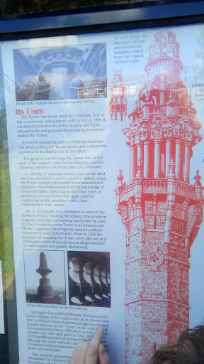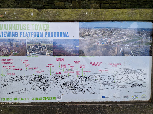 This was originally going to be a chimney for a mill owned by John Edward Wainhouse. He wanted to build a tall chimney to disperse the fumes high in the sky to make the air over Halifax cleaner. He sold the mill before the chimney was finished and the new owner refused to pay for it to be finished. So Wainhouse paid himself to finish it and then built a folly on top. There also is a story he did it to purely annoy his land owning neighbour. His neighbour boasted how private and secure his estate was. So Wainhouse built the tower so he could sit at the top and watch his neighbour and wind him up. The mill is long gone. The chimney is now owned by Calderdale Council. They open it on some bank holidays. The entrance is just pass Enterprise Car Rental, opposite the fire station. There is on street parking only and it can get busy. There is nothing much around it. Regular buses stop at King Cross about 5-10 mins walk away. At King Cross is also a large council car park, shops and takeaways. Due to disability I have never been up but it is an amazing landmark. At night the folly is lit up. It is always nice to see as you come off the M62 at Ainley Top, down the Calder Way and know you are...