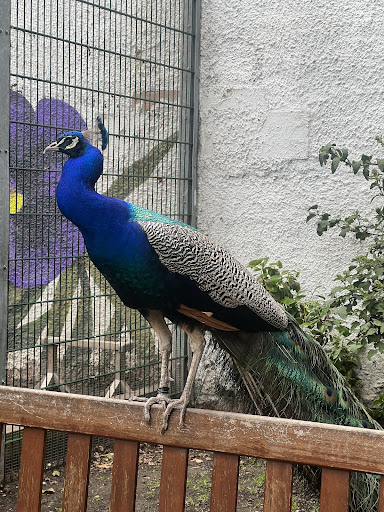 The peacocks roam freely and are a constant attraction to visitors as are the grey squirrels that also run around freely.