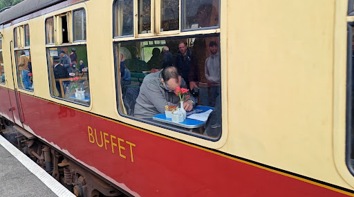 The boys were having a good time but as it got near to lunchtime, the 6 year old said he was very hungry, so we boarded the train with the buffet coaches at Rothley. This was 11.23am. Initially and this is usual for the GCR, there wasn't enough seating for passengers, so we stood until some people kindly moved for us. I queued for some time to order food and as I got to the front of the queue, I started to order our food by asking for two sausage cobs and the member of staff in kitchen uniform interrupted me and said, "no" in a raised voice. I was amazed how abrupt and rude he was. I asked him why and said we've ran out of hot food (11.23am train). I was flabbergasted. He was obviously stressed and hopefully embarrassed and said they wouldn't have any food for one and a half more hours - in others until lunch was nearly over. I had two hungry children and all I could buy for them was crisps, cookies or chocolate. I did manage to buy two cups of tea but they ran out of milk too within ten minutes. As you can imagine, the only discussion between fee paying passengers in the advertised buffet coach was how poor the GCR organisation was with lots of hungry, irritable people. What is perhaps worse is that I didn't receive a single apology from any member of staff.