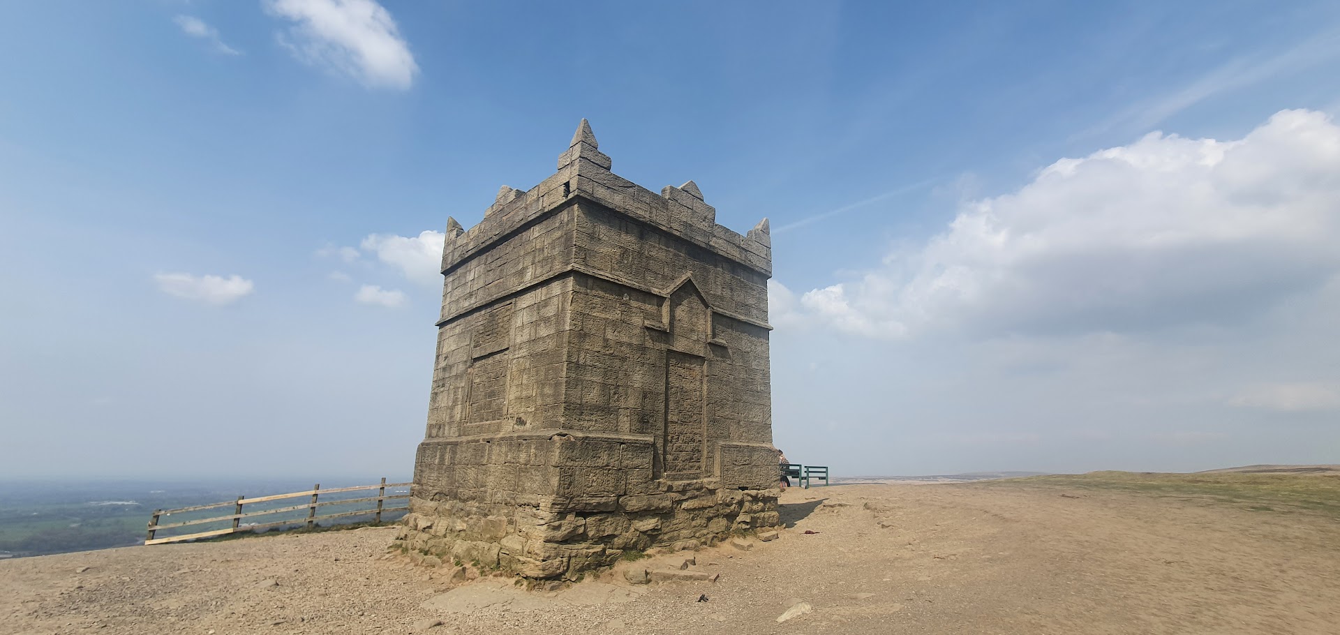 When we arrived at Rivington Pike Tower, the panoramic view was incredible! You can see the whole of Horwich, including landmarks like the Toughsheet Community Stadium and Lower Rivington Reservoir—a truly rewarding sight after the hike up.