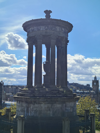 The monument features a circular temple adorned with classical columns, topped by a dome and a statue of Dugald Stewart seated within. The design of the monument is inspired by ancient Greek and Roman architecture, reflecting the ideals of the Enlightenment era.