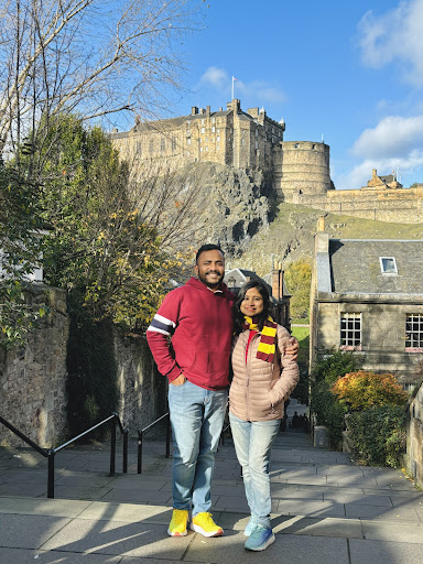 It is a very popular spot to see a unique view of Edinburgh Castle. You can take a taxi to the top of the viewpoint, or walk up the long staircase. At the top, you'll have a nearly eye-level view of the castle with the staircase at the bottom.