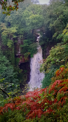 Once you navigate down the Hill side, you will be greeted by the foot path. Turn right on to it and you will make your way up to the falls. If you turn left it will take you donw to the car park. (Still a nice stroll down for afterwards if you fancy it)
