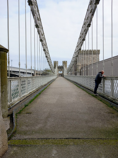 Read moreI don't remember ever walking across the Telford Suspension Bridge until the pandemic started when a temporary one way system was put in place for pedestrians which meant if you were walking across into Conwy you had to cross the road and use the suspension bridge whereas if you were leaving Conwy you used the road bridge as normal. The one way system has now gone but the suspension bridge remains open to pedestrians so I still use it when walking over to Conwy. What I find unusual is the way the cables at one end are secured into the wall of the castle. You could just imagine the conversation these days - "We want to build a new bridge and would you mind if we use your 13th century monument as an anchor?". It's a bit of a shame that the bridge is sandwiched between the featureless road bridge and the awful railway bridge which partly block off what would otherwise be scenic views. You do at least get a close up view of the castle at one end of the bridge by way of...