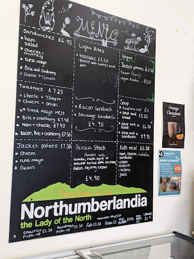 Popped into the wee cafe for a hot choc and cake afterwards (both very nice and not expensive), and glad to see it was also dog friendly - not only did they have doggy ice-cream advertised, but they had doggy chicken sausages available inside too. They also serve a small selection of food, but finished serving at 3pm so was too late for that and cannot comment. Toilets available around the back, but I think they're only open when the cafe is. Free to visit, but the option to...