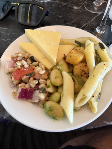 It was lunch, so there was farro salad, pasta salad, tomato soup, bread, cheese, chicken with corn and beans and a few other options. Everything was incredibly bland and lacked any sort of seasoning apart from the chicken.