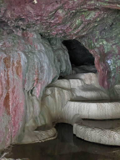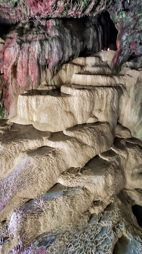 Beautiful limestone rock formations and drop-pools that look like they're made of honeycomb are just inside left of the main cave entrance. Give your eyes a few moments to adjust to the low light to see them if it's bright / sunny outside. The smaller upper cave is where the freshwater spring falls from (The Holy Well). It's a little slippery in places to get to the top (flip-flops might not be the best to climb in). Don't forget to take a torch to see all the colours inside, or a reasonable camera / mobile phone.