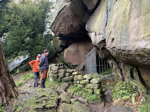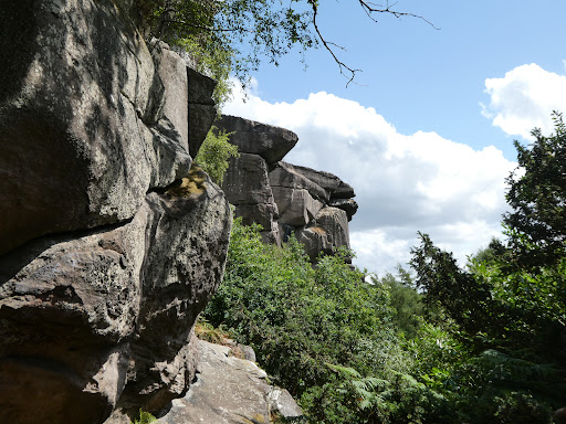 An interesting area of the Peak District, with dramatic rock formations providing opportunities for climbing and sightseeing, and history close by. Good views over the surrounding countryside on a clear day. At the foot of Cratcliffe is the Hermit's Cave, a small cave protected behind railings, notable for a well preserved carving of the crucifixion which may date back to the 1500s. Accessing the rocks and cave involves negotiating some moderately steep and narrow paths on loose ground, so requires a bit of care. The wooded setting means the cave's location isn't immediately obvious. There's a small layby at the side of the nearby road providing free parking for a few vehicles. No other facilities mean it hasn't become a major tourist destination. While visiting, don't miss Robin Hood's Stride or Nine Stones Close stone circle, both located in the same area...