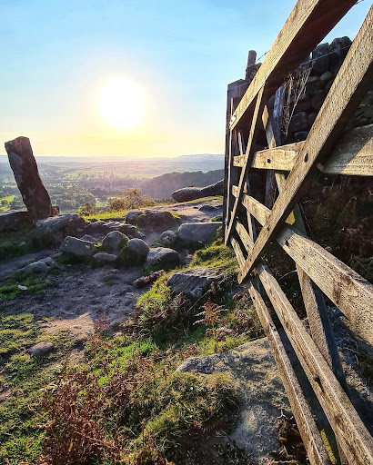 One of the lowest of the Dark Peaks gritstone edges. Easily accessible from the Robin Hood car park - includes standing stones, iron settlements, high cliffs and views south to Baslow and the White Peak as well as the Chatsworth Moorlands and the high edges beyond Curbar.