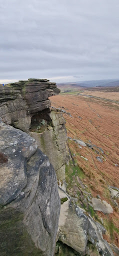 Read moreStanage Edge is one of the many prominent gritstone escarpments located in the Peak District. Historically, the area was quarried for grindstones; rocks that formed in vast river deltas that once covered the whole of the White Peak from the Roaches in the West to Kinder Scout in the north. Parking in Hathersage, you leave the village and start on a relatively gentle ascent up to the escarpment that takes about 45 mins (depending on walking ability). Once on top of the escarpment, you can vary the length of the walk to suit your needs. We did a relatively short loop of approx. 10 km. Depending on the weather, while on top of the escarpment you should have some wonderful 360 views, including across the Hope valley with Win Hill and even Mam Tor viewable on a clear day. While walking along Stanage edge, you will likely pass Robin Hood's cave (take care not to miss it), which is worth popping into, though does require abit of care and agility to reach the 'The Balcony' - but worth it. While the highest point along Stanage edge is only 458 metres (at High Neb), you are quite exposed so it can be windy / chilly. Therefore, be suitably prepared in terms of clothing. Our walk was only approx. 2.5/3 hrs and included visiting Robin Hood's cave and the Holy Trinity chapel remains as we dropped back down...