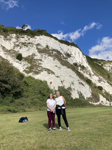 One of Kent's most beautiful beaches, with a sheltered cove reminiscent of the Devon coast, and dramatic white cliffs to either side. The setting is the standout feature, but there's plenty of history too. Prior to World War 2, a hotel and a number of houses stood behind the beach. Only the final couple of houses at the north end of the bay survive, but there are numerous small caves in the cliffs behind the green space with the wooden boat sculpture. The green algae below these makes the chalk very slick, so take care if you investigate these. To the south end of the bay there are colourful beach huts, a well preserved military pillbox and the Coastguard pub and restaurant. There's ample paid parking, toilet facilities, and a refreshments kiosk offering hot and cold drinks and snacks. Heading up onto the cliffs there are great scenic walks towards Dover heading south, or Kingsdown...