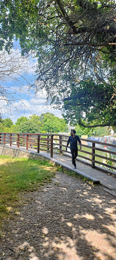 A fantastic park with reasonable Sunday parking at £1.50 for the whole day. Abundant walking trails along the river, made even better if you try a hiking app called Komoot. It's a kid's paradise, boasting climbing nets, swings, and even a mini rock climbing area. Don't forget the skateboarding spot and sand pit. Football goals for the sporty, and dogs roam freely (be aware). Adjacent to a large Sainsbury's for all your picnic needs. This place has it all - football, tennis, picnics, playtime, scenic walks with barges, cows, and more. People paddle boarding, fishing, and swimming too. Definitely worth revisiting.